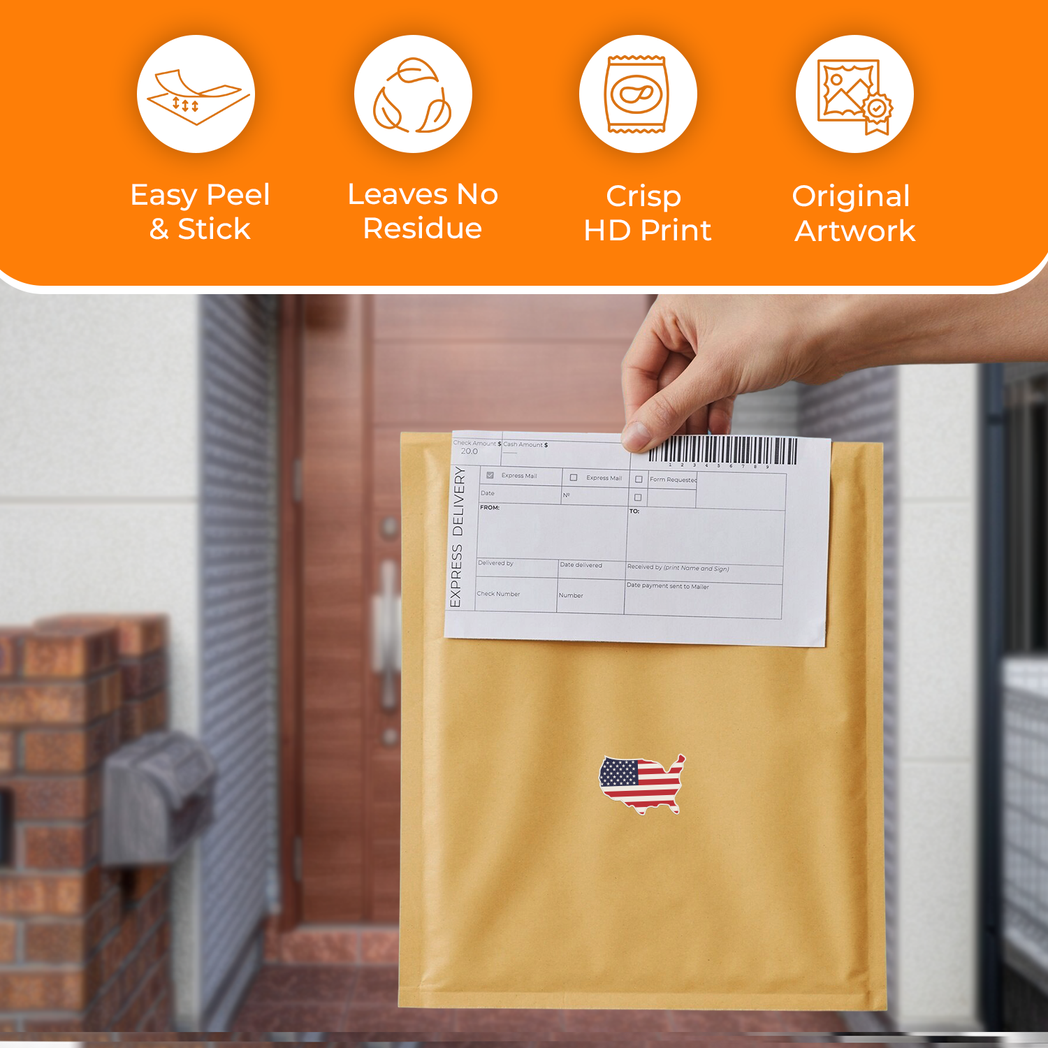 Proudly made in the U.S. with high quality paper and vibrant inks to ensure colors stay bright and bold. Each sticker features a strong adhesive that sticks securely to paper, plastic, glass, and metal—making it easy to add a patriotic touch to anything.