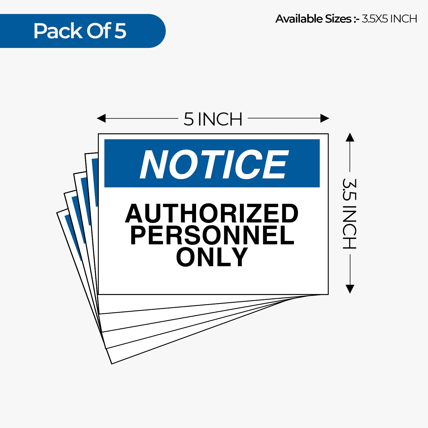 StickerJet Authorized Personnel Only 3.5"x5" and 5"x7" Workplace Stickers - Pack of 5 Individually Cut Rectangle Premium Vinyl Decals, Waterproof, Weatherproof, Scratch-proof, UV resistant