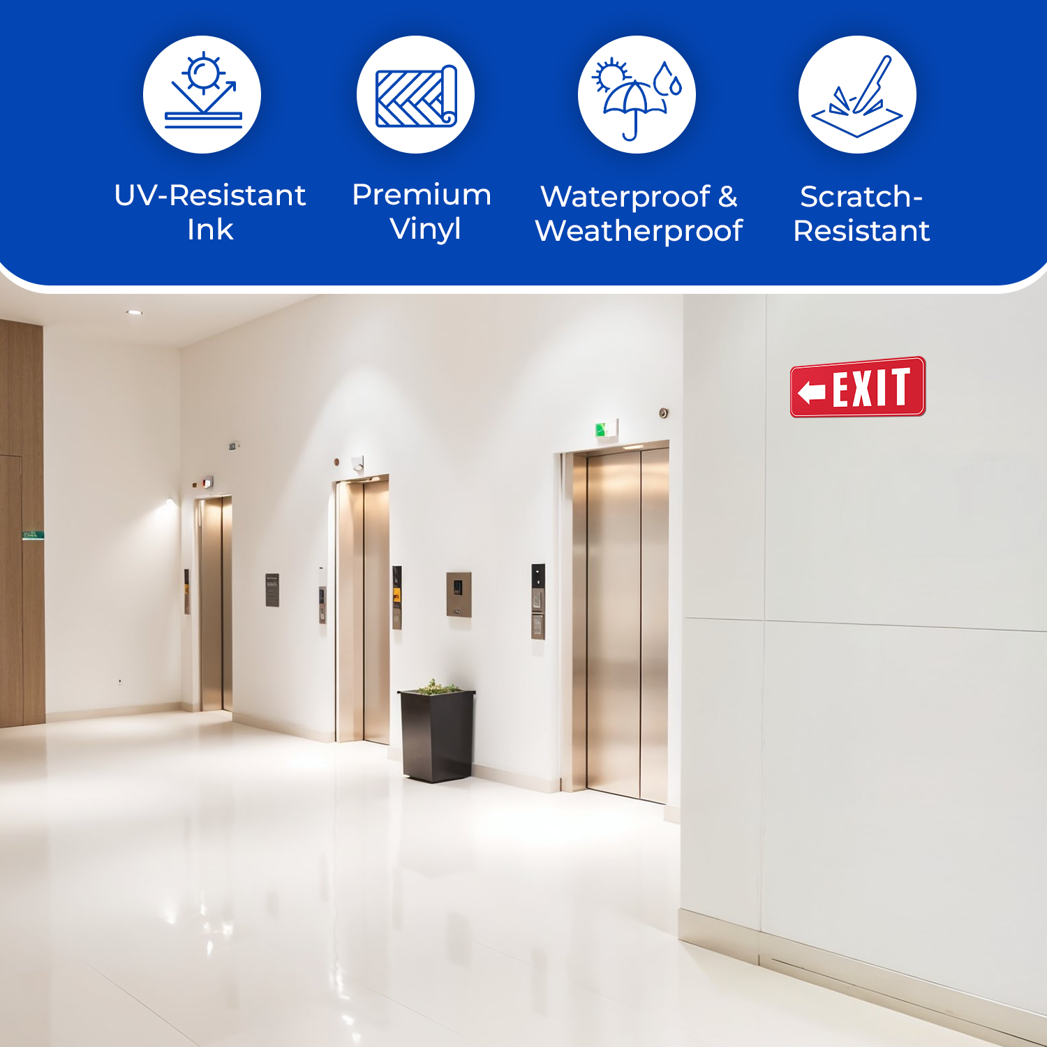 You can easily apply them to doors, walls, and windows for prominent guidance. Proudly made in the U.S. Each emergency exit sticker is durable, waterproof, and UV-resistant, ensuring your waterproof exit sign sticker provides lasting visibility indoors and out with residue-free removal.
