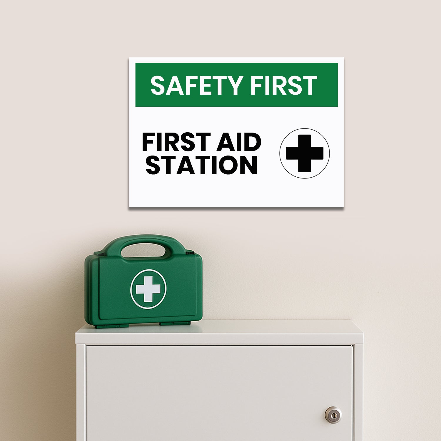 StickerJet First Aid Station 3.5"x5" and 5"x7" Workplace Stickers - Pack of 5 Individually Cut Rectangle Premium Vinyl Decals, Waterproof, Weatherproof, Scratch-proof, UV resistant