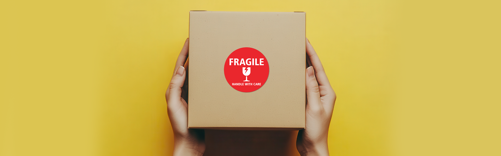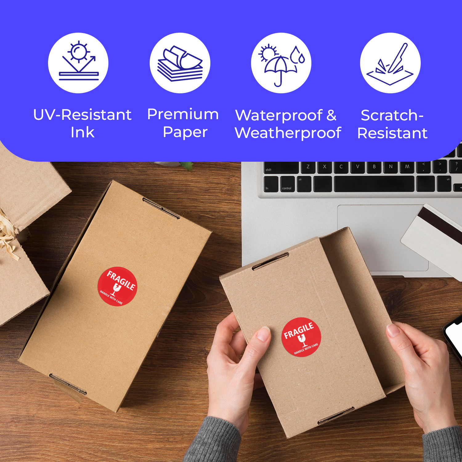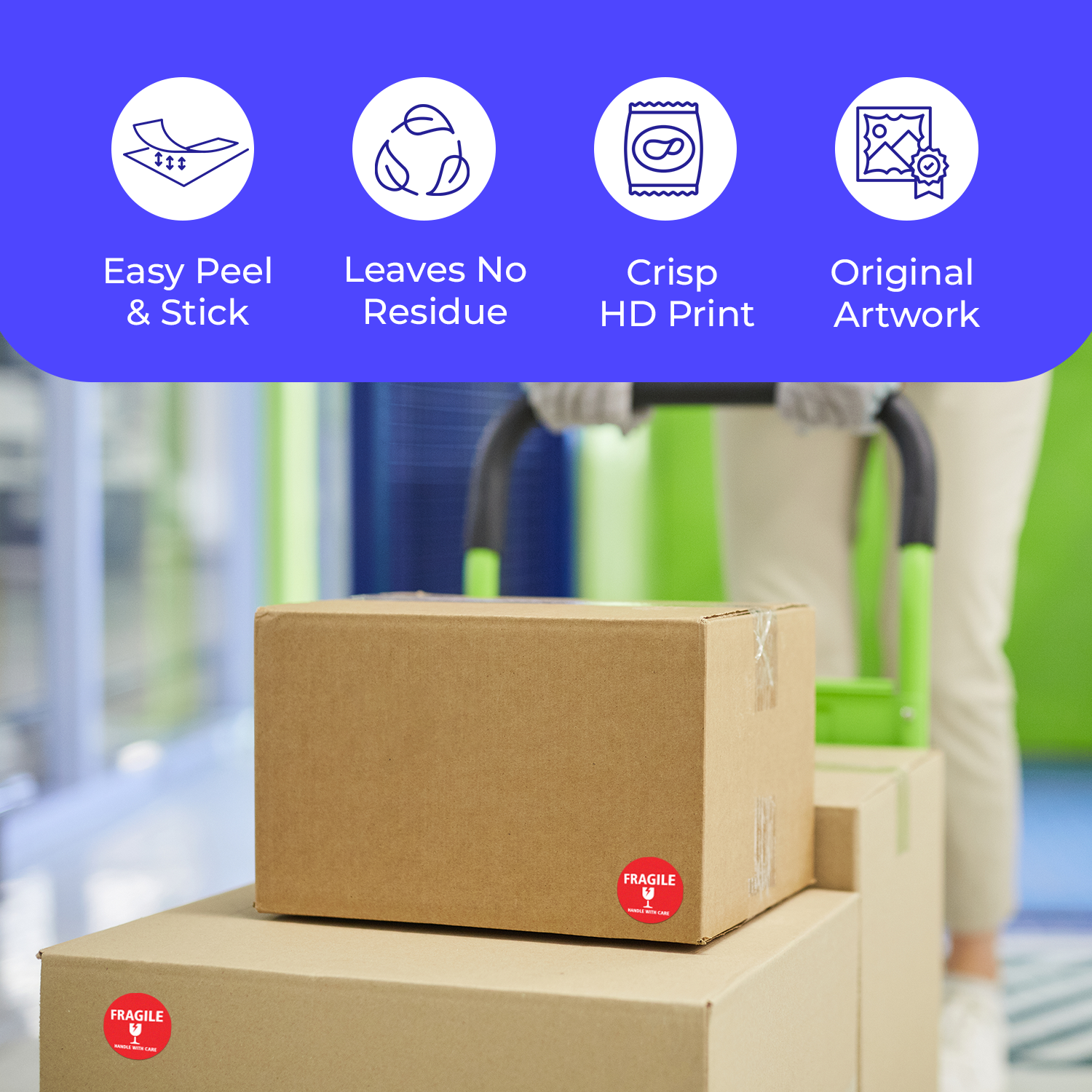 Protect your delicate items and ensure careful handling with our bold red Fragile – Handle with Care stickers from StickerJet.