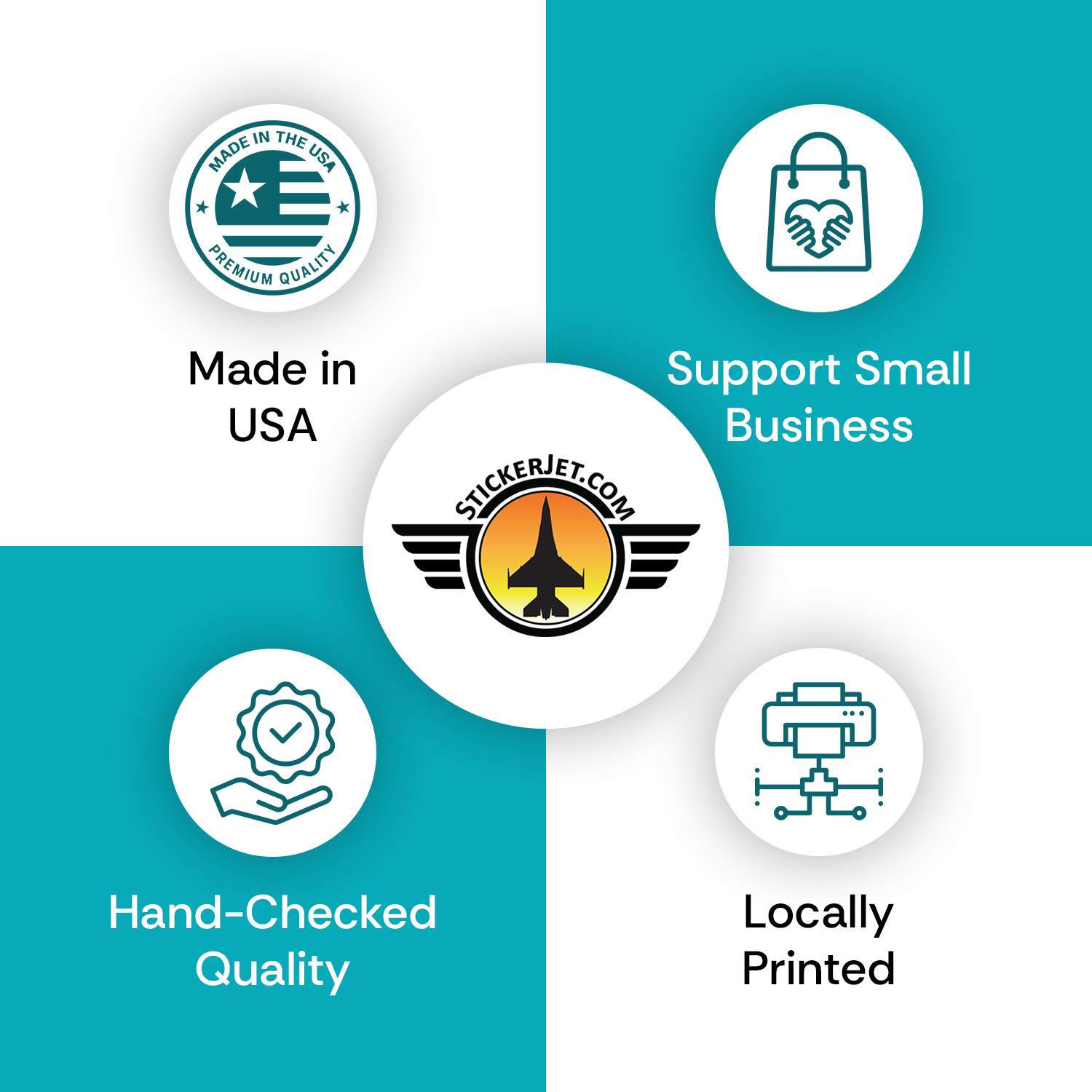 All stickers are proudly printed in the USA using premium materials and advanced print technology.