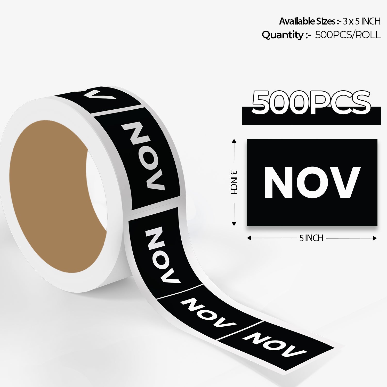 StickerJet November (Rectangle) – Month Lables – 2"x3" and 3"x5" Rectangle Labels – 500 Qty/Roll – Paper, Easy Peel And Stick, Strong Adhesive, Made In USA