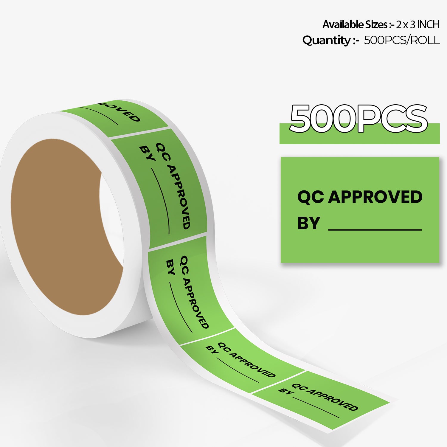 StickerJet QC Approved By – OSHA Quality Control Roll Labels – 2x3" Rectangle Labels – 500 Qty/Roll – Paper, Easy Peel And Stick, Strong Adhesive, Made In USA