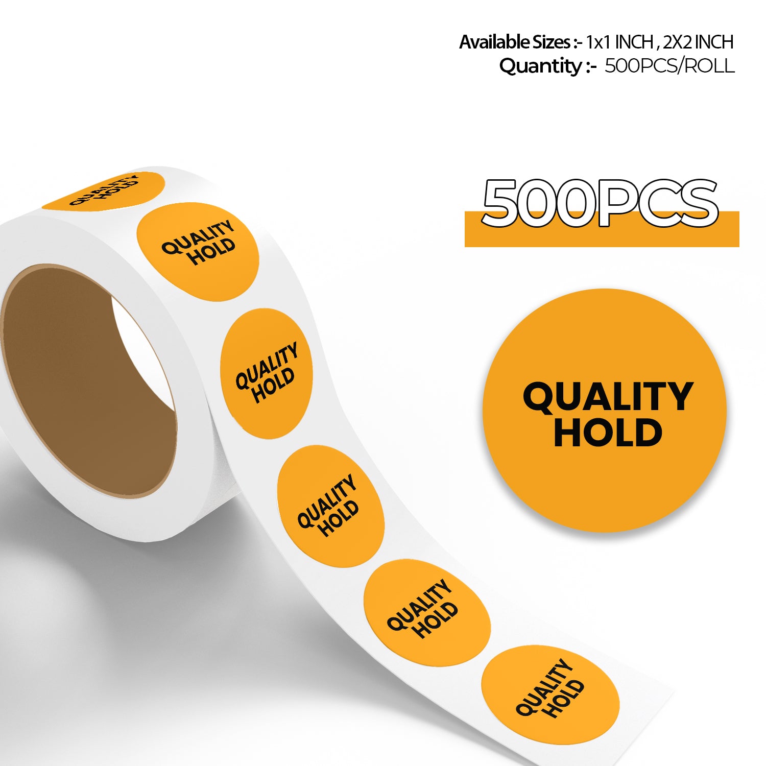 StickerJet Quality Hold – OSHA Quality Control Roll Labels – 2x2" Circle Labels – 500 Qty/Roll – Paper, Easy Peel And Stick, Strong Adhesive, Made In USA