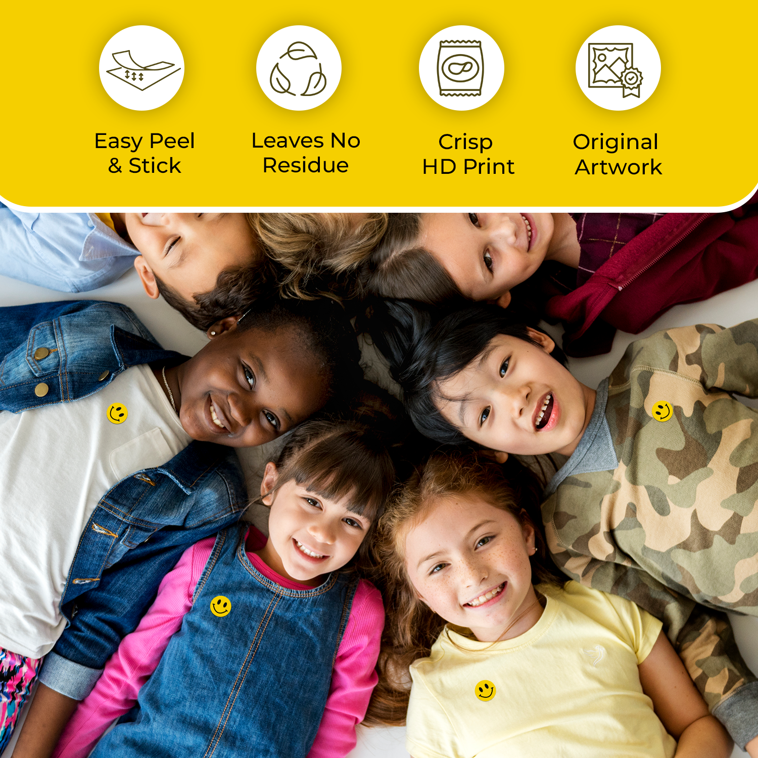 Bring a little extra joy to your day with these bright yellow Happy Face Stickers from StickerJet!