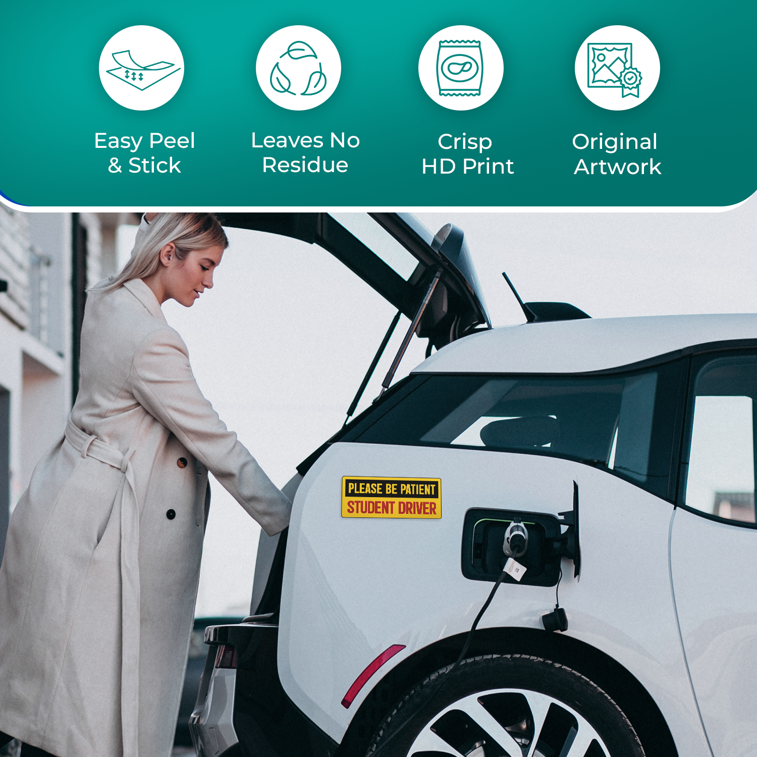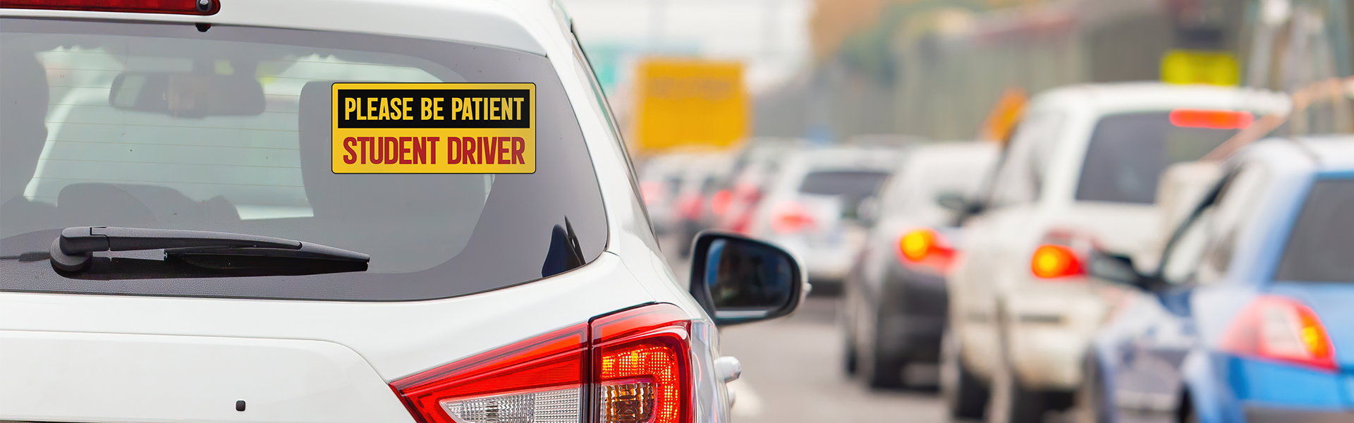 Help keep new drivers safe and seen with our bold Student Driver stickers from StickerJet. Featuring bright colors and bold text for maximum visibility, these decals quickly alert nearby drivers to use caution.