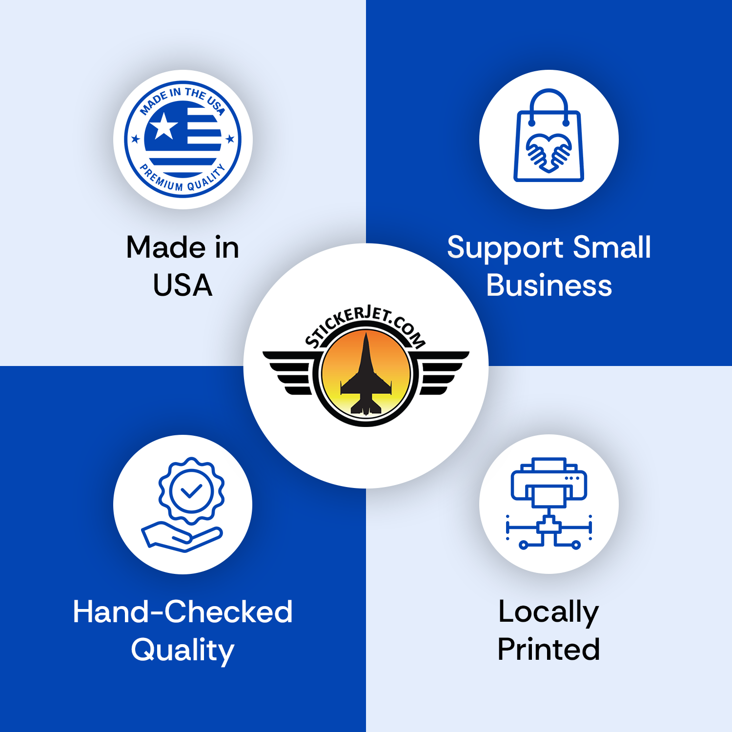 All stickers are proudly printed in the USA using premium materials and advanced print technology.